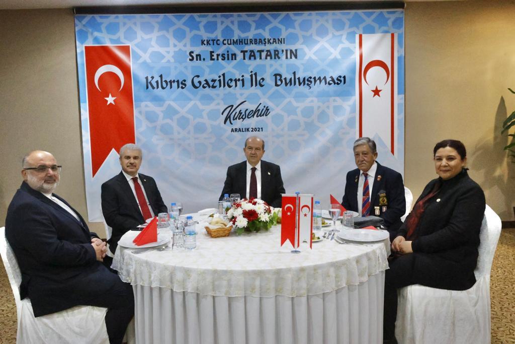 Cumhurbaşkanı Ersin Tatar, Kırşehir temasları çerçevesinde dün ilk olarak Kıbrıs gazileri ile yemekli toplantıda buluştu.